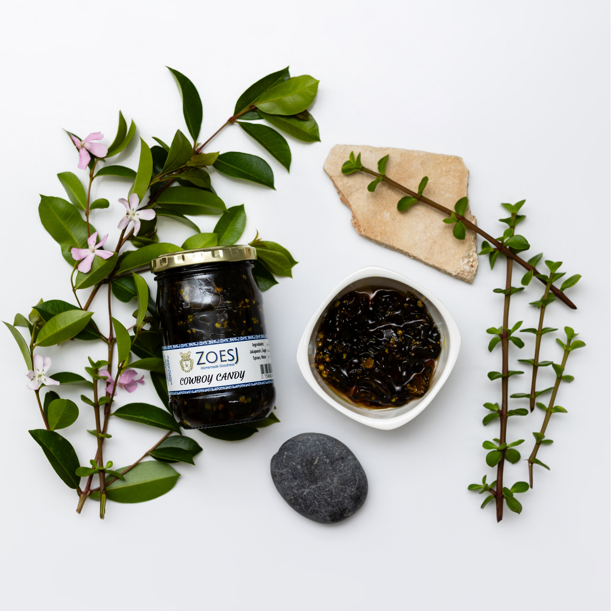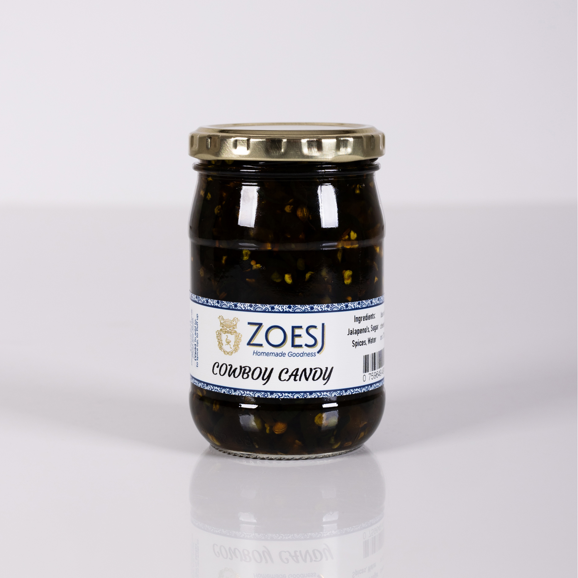 The ultimate flavor punch! Sweet, spicy jalapeños in a syrup infused with a secret spice blend. Perfect for a "staan rib," cheese board, morning eggs, or even those last-of-the-month cream crackers.